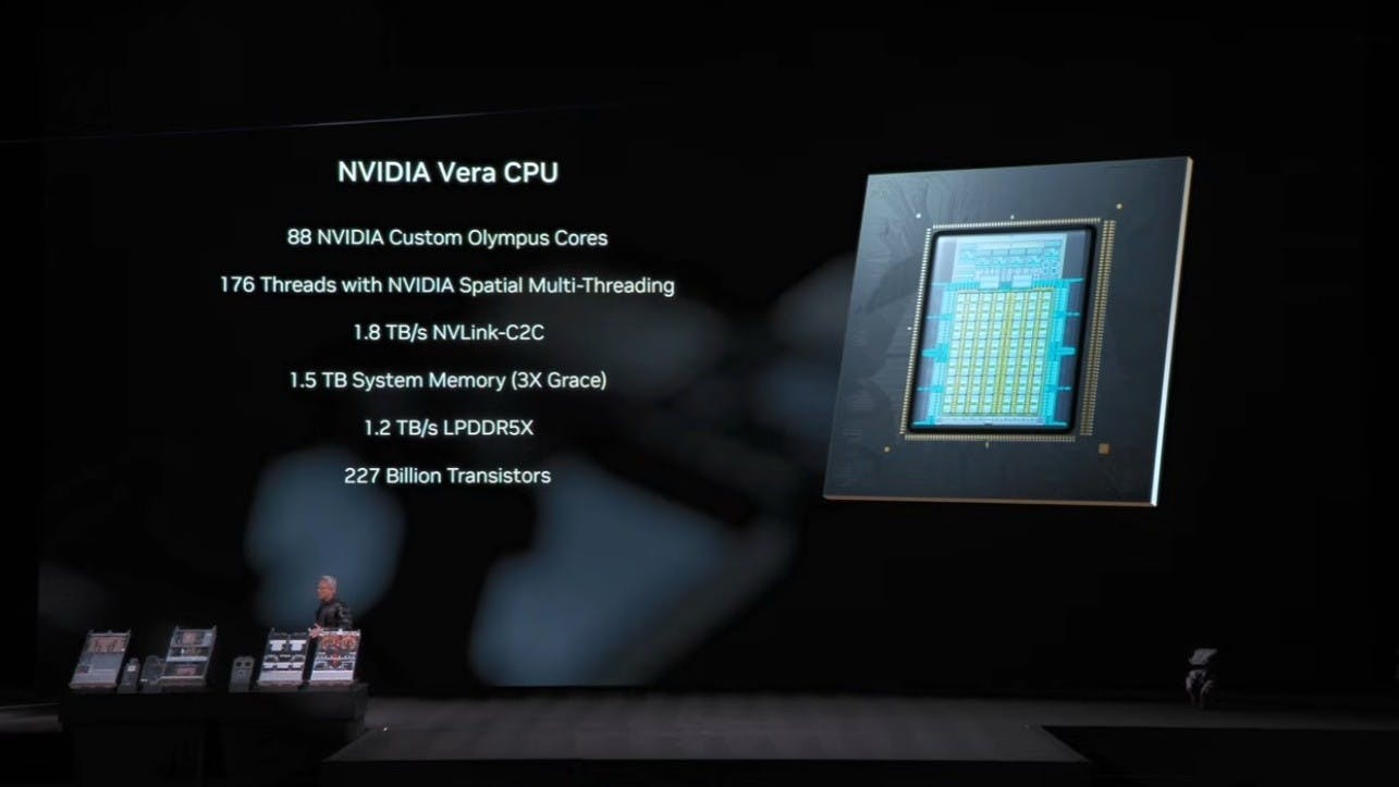 ▲Vera CPU具備88核NVIDIA客製化Olympus核心與支援多執行緒技術