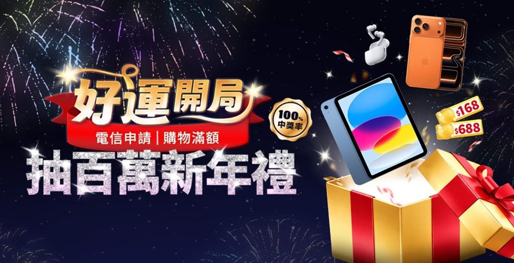至1月29日,申辦指定電信服務或購物滿額,登記抽iPhone 17 Pro等禮品。