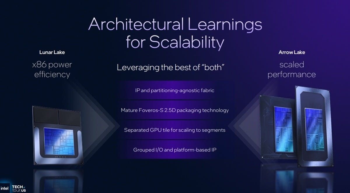 不過Intel仍從Lunar Lake獲得不少寶貴的經驗,並轉化到Panther Lake的技術與架構規劃,並把標準性能指標目標設定在25W TDP,但同時又能依據裝置型態彈性在更高或更低的TDP彈性設定;故Panther Lake藉由Lunar Lake的多晶粒設計建構彈性設計,提供自標準輕薄筆電、標準筆電、輕薄獨顯筆電與兼具高性能CPU及GPU的輕薄筆電設計。