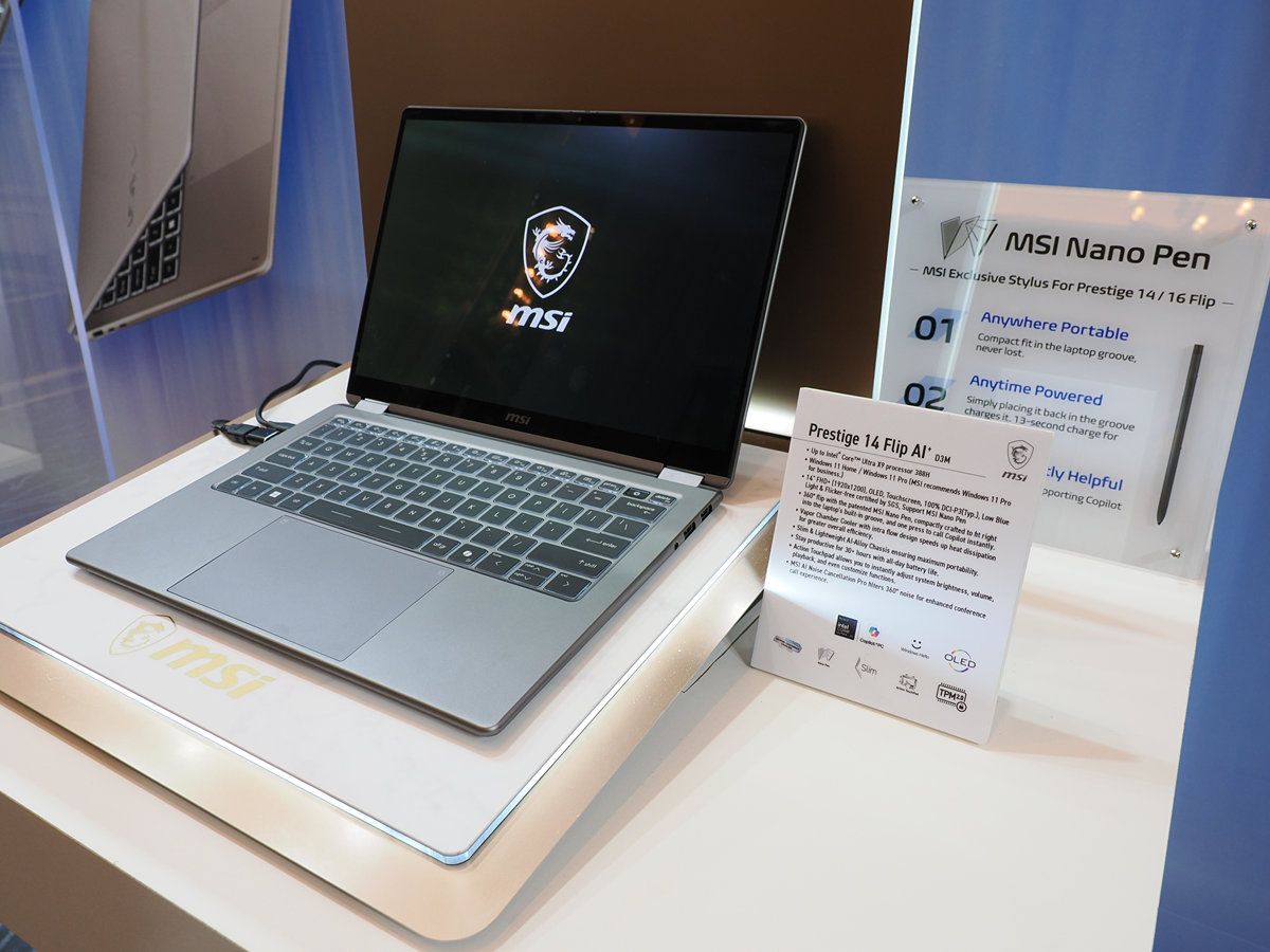 微星新型Prestige商務筆電包括Prestige 14與Prestige 16兩款機型,較前一代機型不僅更為圓潤、具現代感,機身設計也更為纖薄,機身採用全鋁合金材質,並搭配達81Whr的超大容量電池,其中Prestige 14為1.32公斤,而Prestige 16為1.59公斤。除了傳統設計機型以外,微星還推出Prestige 14 Flip與Prestige 16 Flip兩款翻轉二合一商用機型,支援觸控螢幕與觸控筆,搭配的MSI Nano Pen不僅具備出色的手寫觸感與收納自動充電功能,僅需充電15秒即可使用45分鐘。