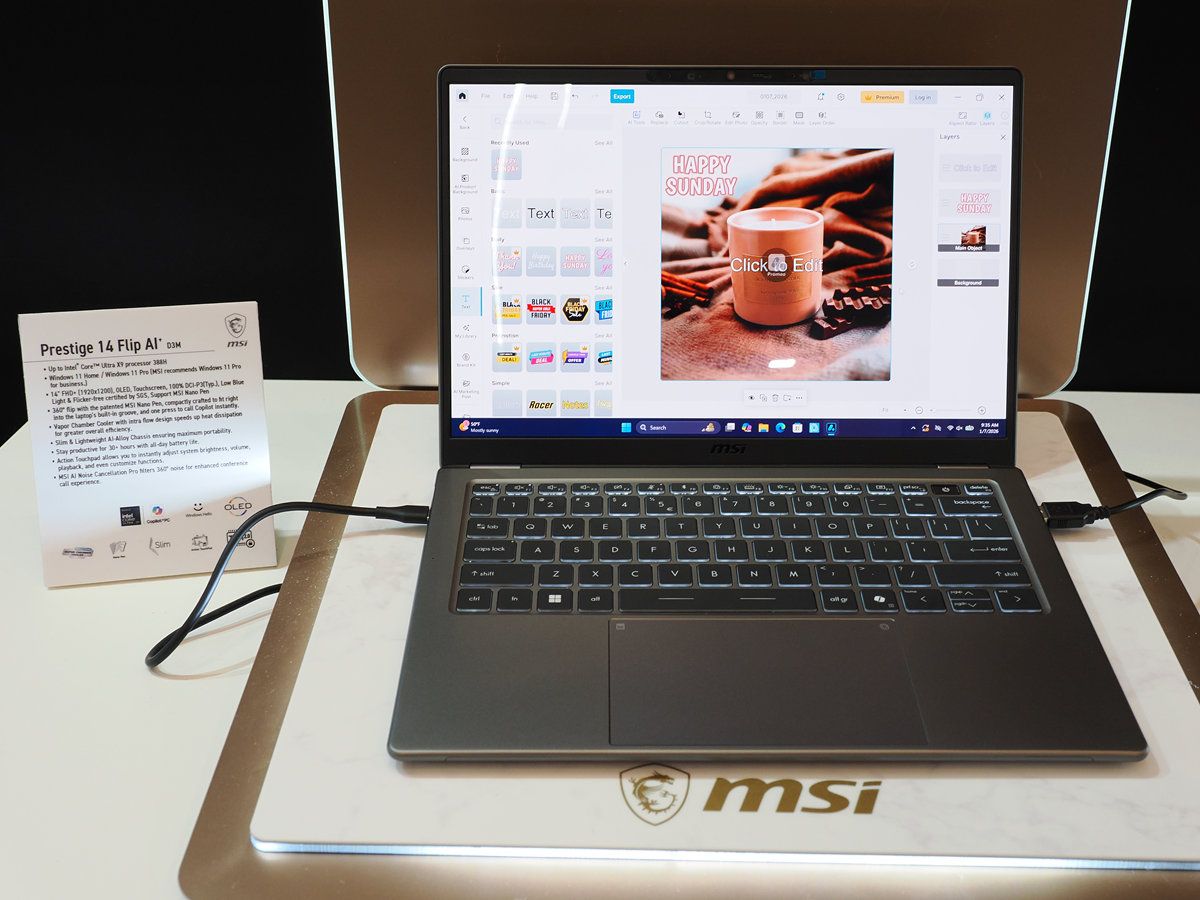 微星在2025年Computex就在展區率先展示了新一代商用筆電的概念設計,在2026年CES,微星正式宣布搭載Intel Core Ultra 300系列處理器的新世代Prestige商務筆電,包含Prestige 14與Prestige 16,相較先前機型採取全新設計語彙,以圓潤流暢的輪廓與更細膩的細節重塑微星商務筆電的意象;此外,微星也率先將具有20條PCIe Gen 5通道的Core Ultra X9用於打造新一代輕薄獨顯電競筆電Stealth,以新樣貌呈現電競與商務雙用高性能輕薄機型。