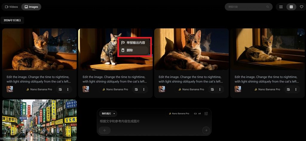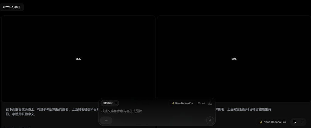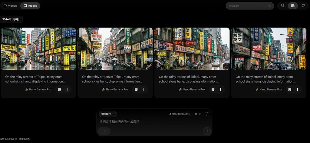 ▲在送出提示詞後,Flow就會依照設定同步繪製多張圖片。提示詞使用繁體中文輸入即可。