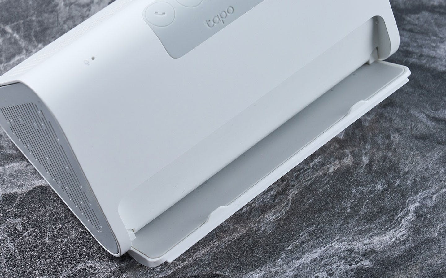 ▲ 機身正面設計了可收摺的平板支架,可以直接將平板電腦置放於上方,搭配 Tapo APP 可以直接透過大螢幕與觸控管理連結的設備。/Photo Credit:TNL Brand Studio