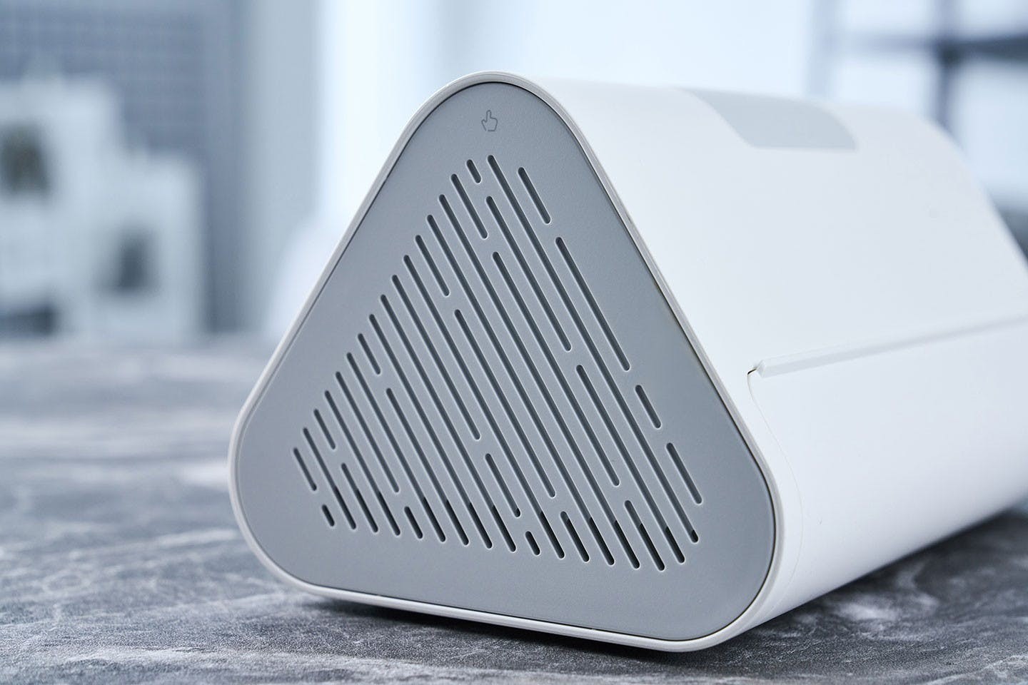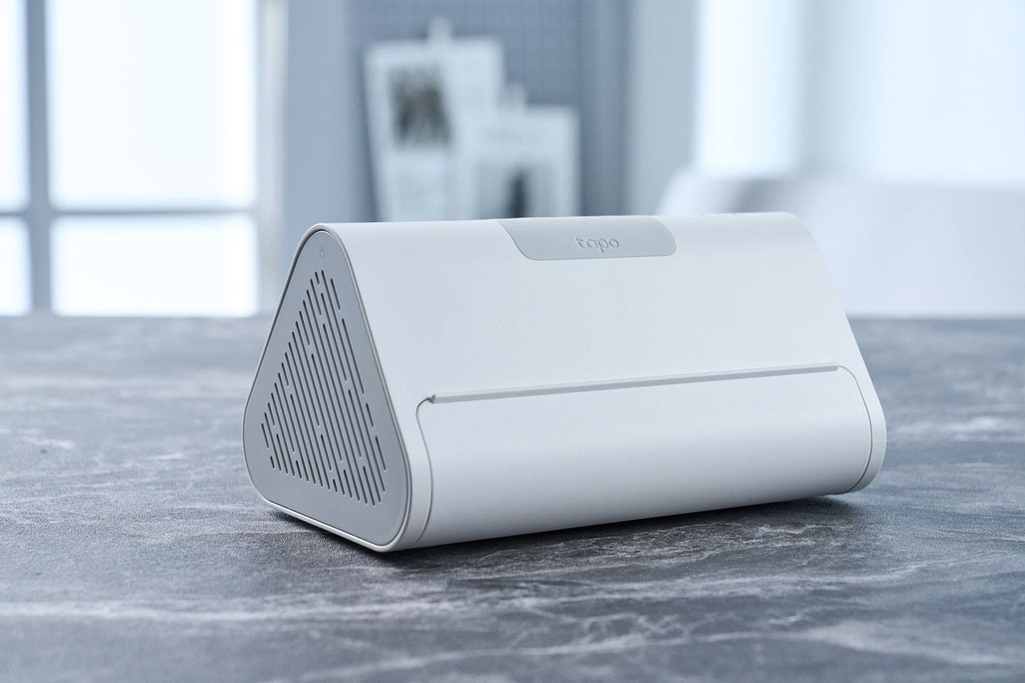 ▲ Tapo H500 智慧網關外觀設計獨特,採用白色三角柱體設計,安裝時可直接置放於桌面上使用。/Photo Credit:TNL Brand Studio