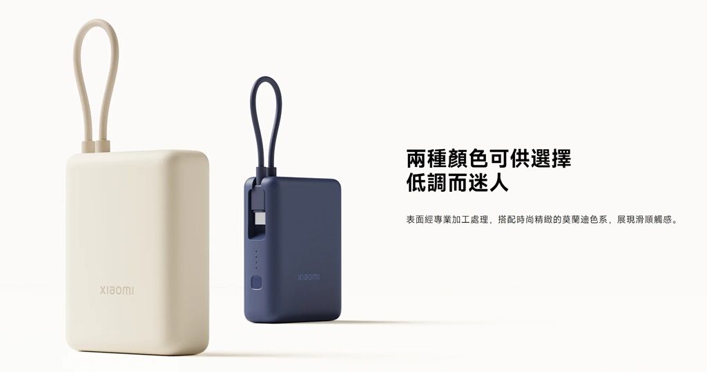 ▲小米自帶線行動電源10000口袋版,採用低飽和度配色,圓潤柔和的外觀也是特色之一。圖片來源