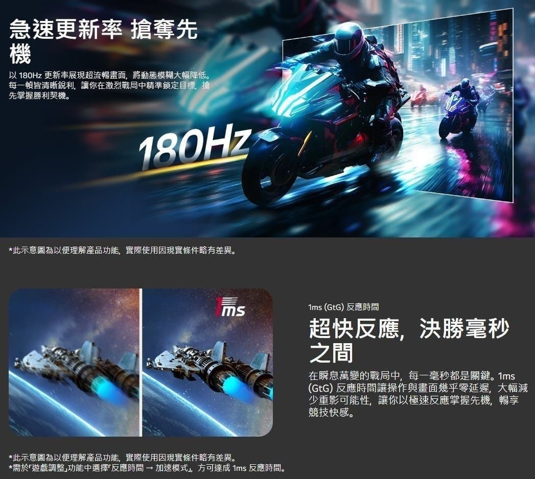 ▲單以180Hz更新率、1ms反應時間就已經達到這價位電競螢幕的標準,它的螢幕又比這價位主流27吋還要大,更別說是少見的曲面螢幕。