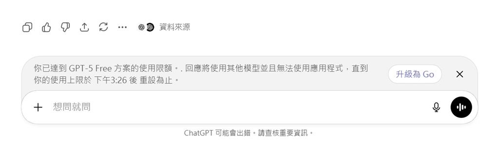 ChatGPT免費版使用額度: