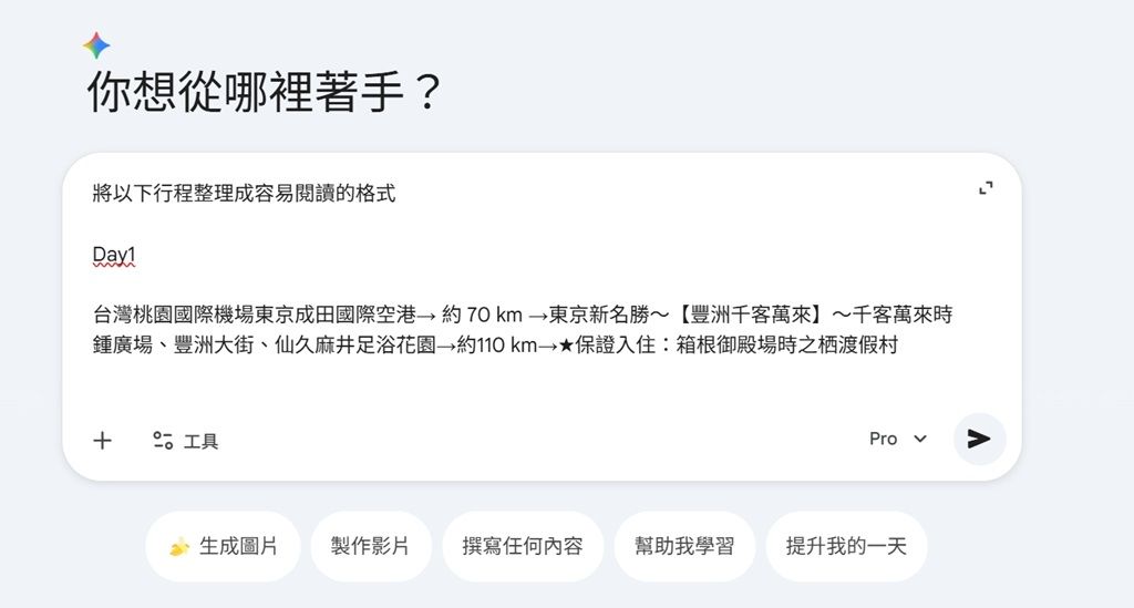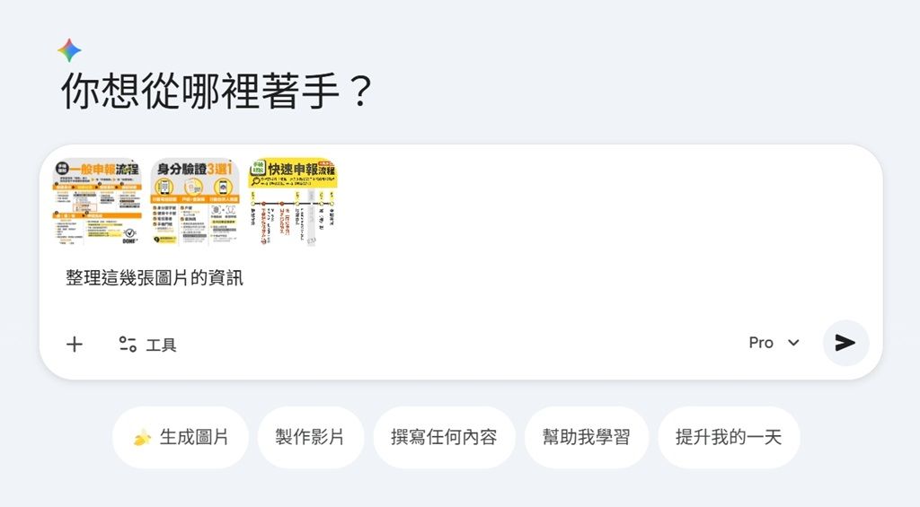 Gemini提供多個模型讓用戶依照需求選擇,例如想要快速回覆就使用「快捷」模型,而若是想要有更深入的答案可以選擇「Pro」模型。不過,因為使用Pro模型時Gemini會需要較長的思考時間,因此用戶必須要在等待時間和回覆品質上做出取捨。