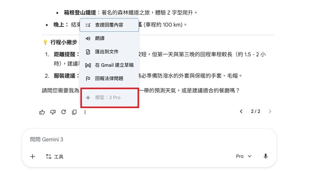 ▲在選擇立即回答功能後,Gemini仍然會使用Pro模型回覆,不會自動調成快捷模型。