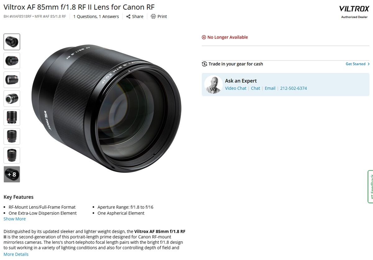 ▲唯卓仕曾推出過RF接環鏡頭,但據稱在Canon施壓下已全面停售