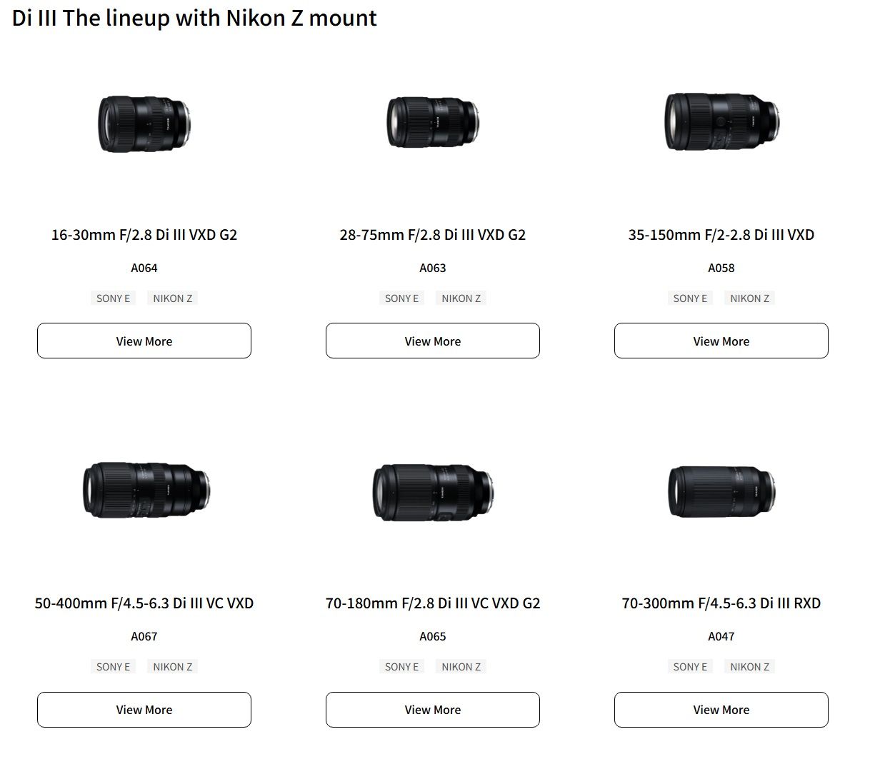 ▲Tamron的Z接環鏡頭多半與Nikon原廠未重疊