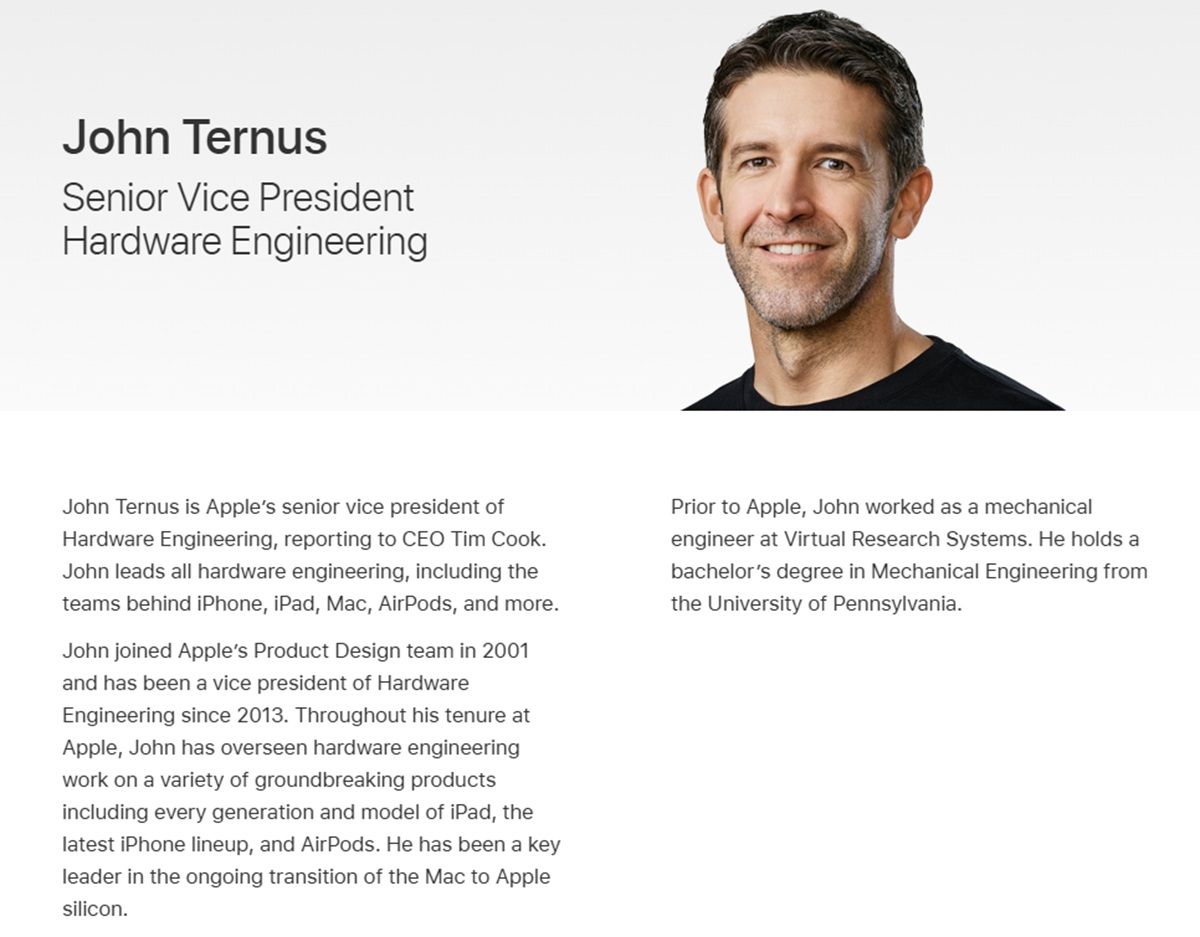 由於John Ternus身兼硬體負責人與設計團隊的執行發起人,在蘋果內部的地位已經處在近乎一人之上、萬人之下,同時蘋果過往設計團隊負責人又是具有崇高地位(可能類似Sony集團的財務長往往被視為下一任執行長人選),而且設計團隊又是作為與其它部門共同協作的樞紐,此次的John Ternus兼任設計團隊主管的意義相當重大。