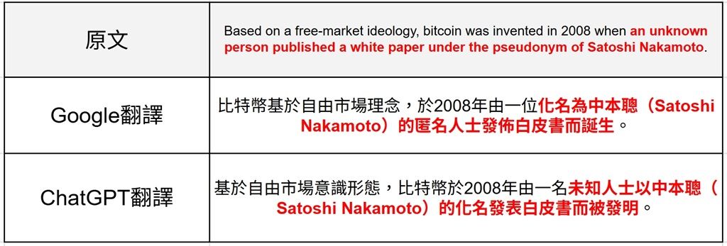 ▲Google翻譯、ChatGPT翻譯都能夠正確理解內容,不過在複雜的語句上,ChatGPT翻譯的文句不若Google翻譯通順。