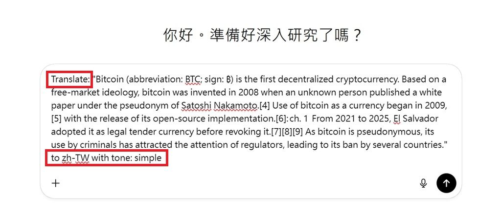 ▲調整語氣功能白話來說,就是替用戶輸入好相關提示詞,由ChatGPT聊天串進行進一步翻譯。以點選「翻譯此內容,風格要淺白,像在跟小朋友解釋一樣」的選項為例,在跳轉至ChatGPT後,系統自動在欲翻譯的文字前後加上「Translate」和「with tone: simple」提示詞。
