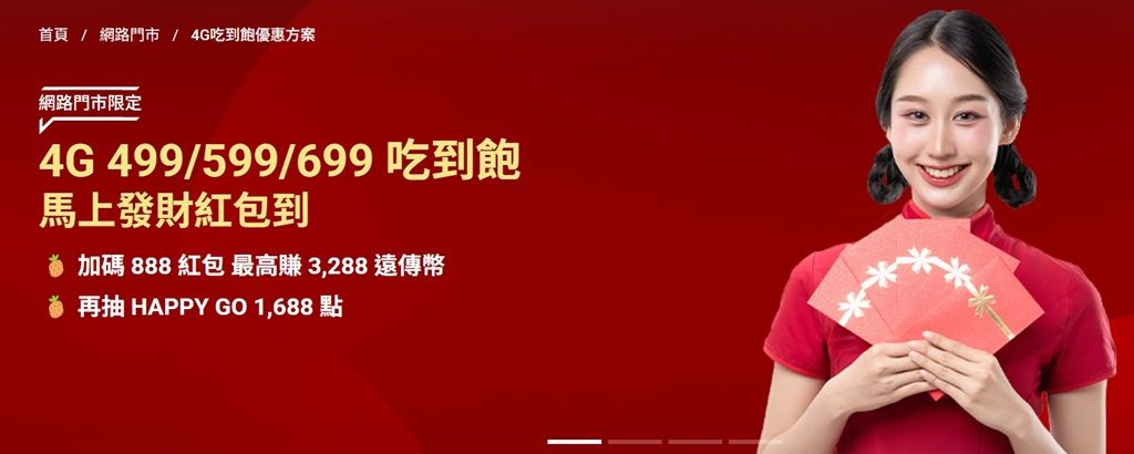 遠傳電信推出農曆新年相關活動,例如即日起至2月28日止,用戶於遠傳電信網路門市新申辦、攜碼申辦4G網路月付499元、599元以上方案,成功啟用可獲得額外的888點遠傳幣。另外,即日起至2月28日止,用戶於網路門市新申辦或攜碼申辦任何門號方案,不限資費和約期,皆可抽Happy Go點數1688點。