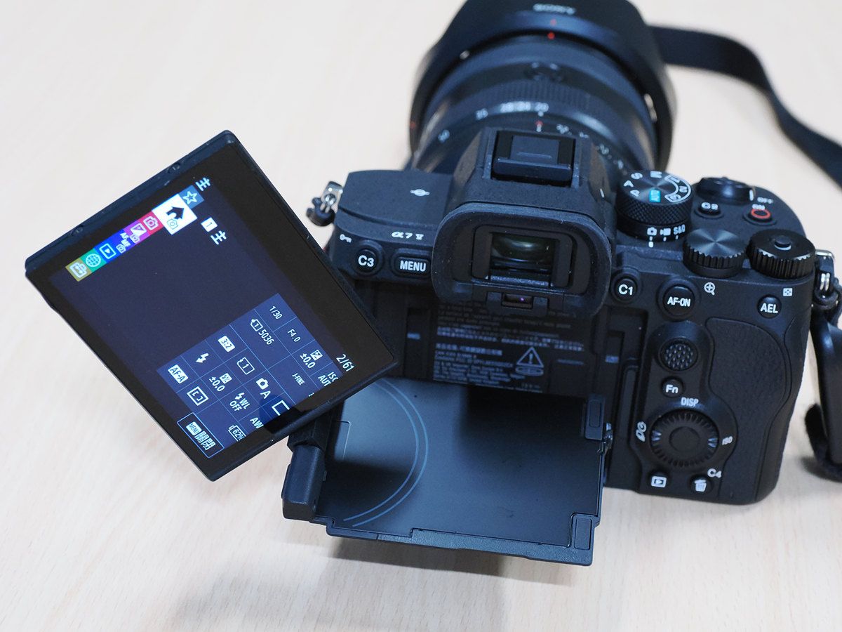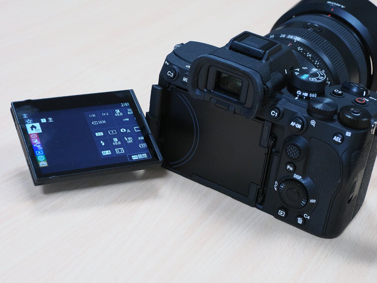 具體來說,A7 V在外型與A7 IV主要的差異在於更動翻轉螢幕的機構與微調握柄設計,其中翻轉螢幕除了增加至3.2吋外,從原本3軸式外掀多角度設計改為4軸多角度,使翻轉結構底部再添上下翻轉的設計,使觸控螢幕再拍攝時能有更多角度的使用彈性,不過此更動恐怕是因應錄影需求,畢竟以靜態攝影使用,即便是原本的三軸翻轉結構也綽綽有餘,反而是作為影像錄製時,透過額外一軸於搭配兔籠、穩定器等配件更有使用的彈性。
