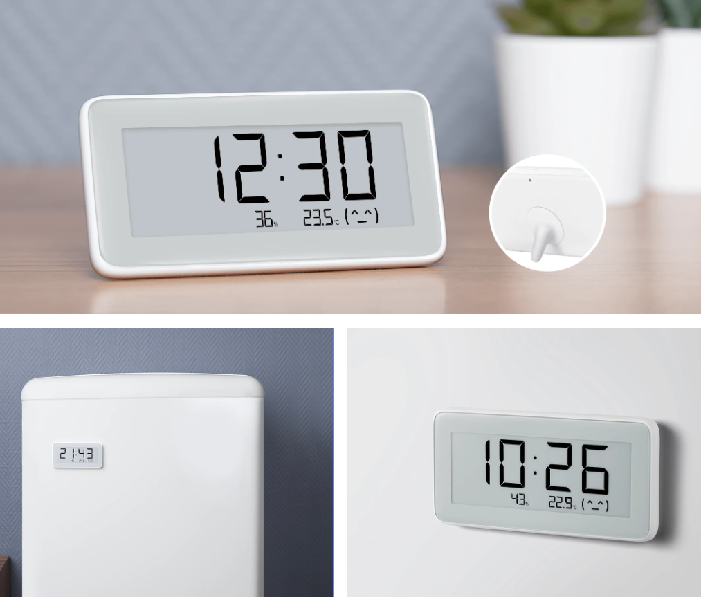 安裝上它可利用磁吸貼在金屬表面,或是用附贈的小支架讓它立起來像是個小時鐘。相較於許多色彩鮮豔的溫濕度計,小米這款產品純白色外觀搭配電子紙舒適的顯示效果,我認為相當簡潔百搭,放在哪裡都不會過於突兀。