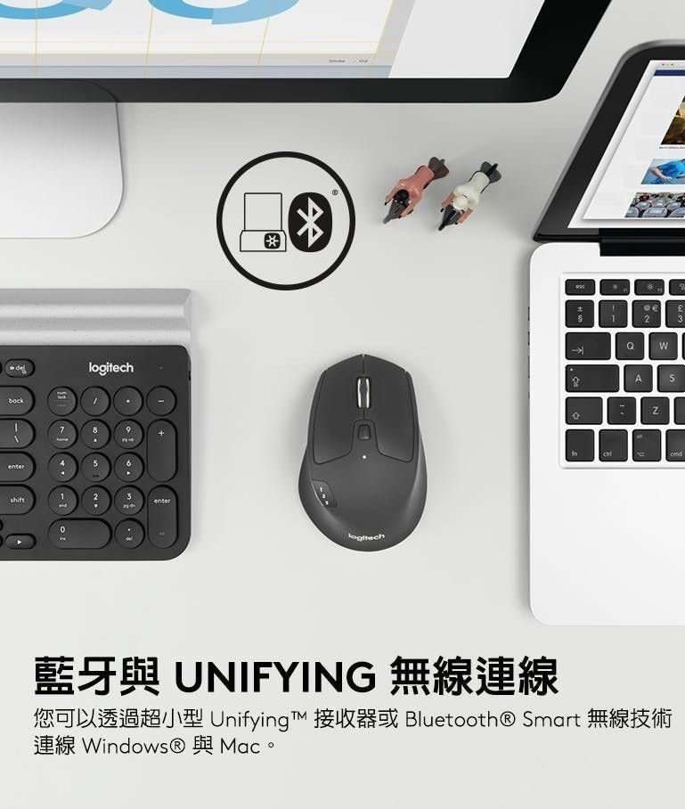 M720特別之處在於支援3裝置連線,滑鼠上有個按鈕可以讓你在3台電腦間切換使用,同時現在連接的電腦編號還會顯示在滑鼠上。