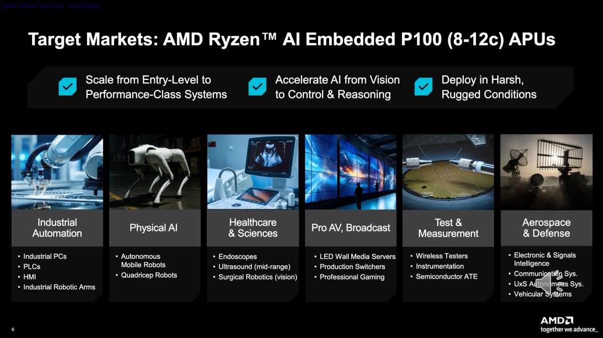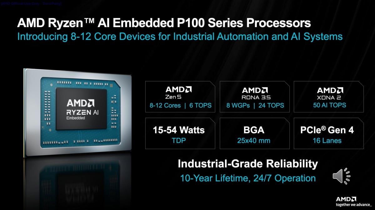 AMD 宣布擴展 Ryzen AI P100 系列嵌入式處理器,CPU 核心數提升 2 倍、GPU 效能增長 8 倍,整合 Zen 5、RDNA 3.5 與 XDNA 2 架構。