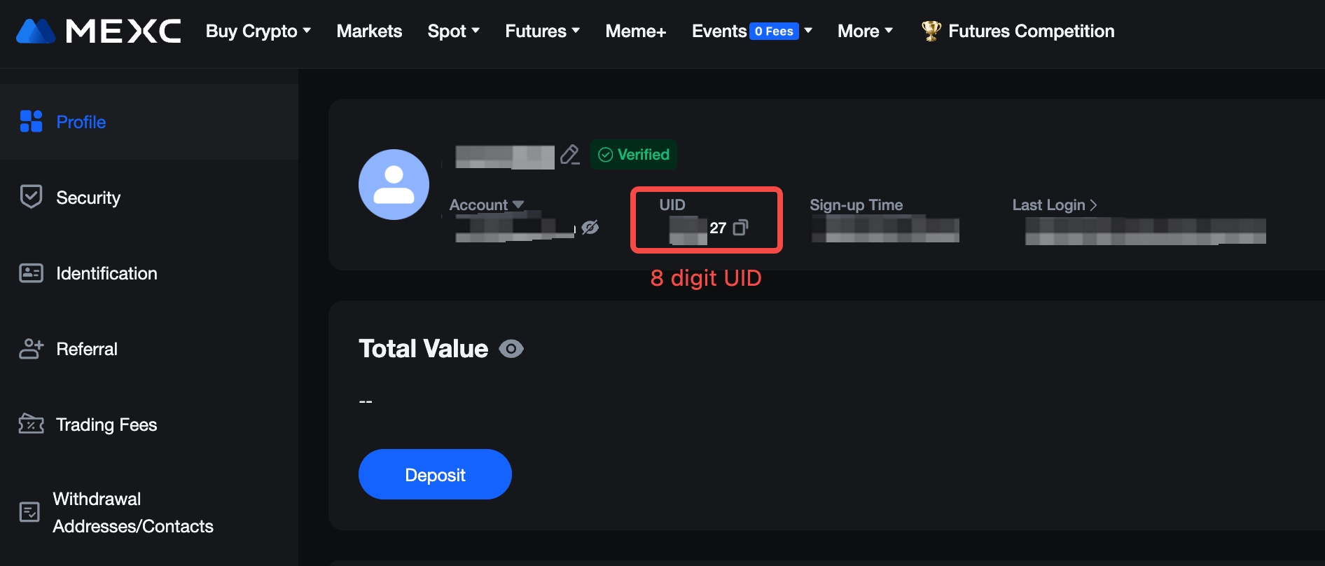 請確保提交正確的 MEXC UID。如提供錯誤的 UID,MEXC 不承擔任何資金損失責任。